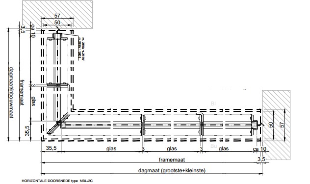 L-vorm, verdiepingshoog, enkelzijdige bediening, naar 2 zijden te openen