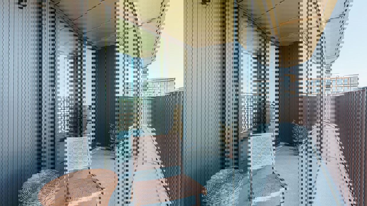 Terwijl de schuivende beglazing zorgt voor bescherming tegen wind, regen en verkeersgeluid. bieden de volglazen tussenschermen een stijlvolle afscheiding tussen de balkons onderling. Zo behouden bewoners niet alleen hun privacy maar ook hun rust en individuele buitenruimte.