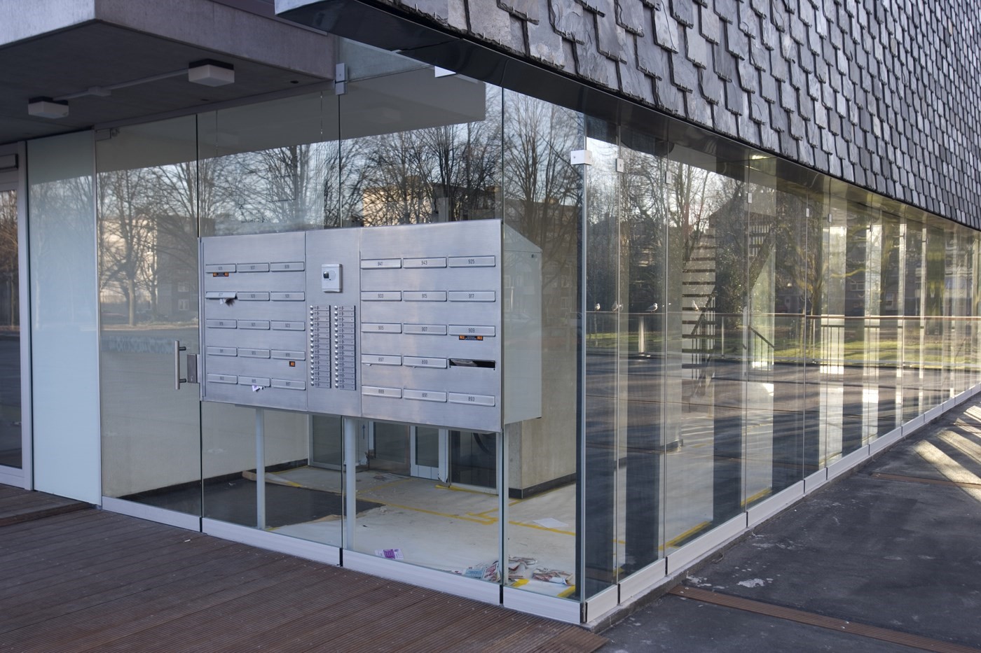 De ‘achterkant’ ligt aan water en een park en vangt veel zonlicht. Daar bevinden zich de balkons, terrassen en steigers. ‘De balkons liggen niet recht boven elkaar. Daardoor krijg je een gevoel van vrijheid. Zeker met het mooie uitzicht’, zegt Alewijnse. Bijzonder zijn de trappenhuizen: bijna volledig van glas, niet alleen omwille van de lichtinval, maar ook uit het oogpunt van sociale controle. En daar, besluit Alewijnse, wijkt De Stadstuinen misschien nog wel het meest af van zijn naoorlogse inspiratiebron. ‘Geen somberheid, maar vrijheid.’