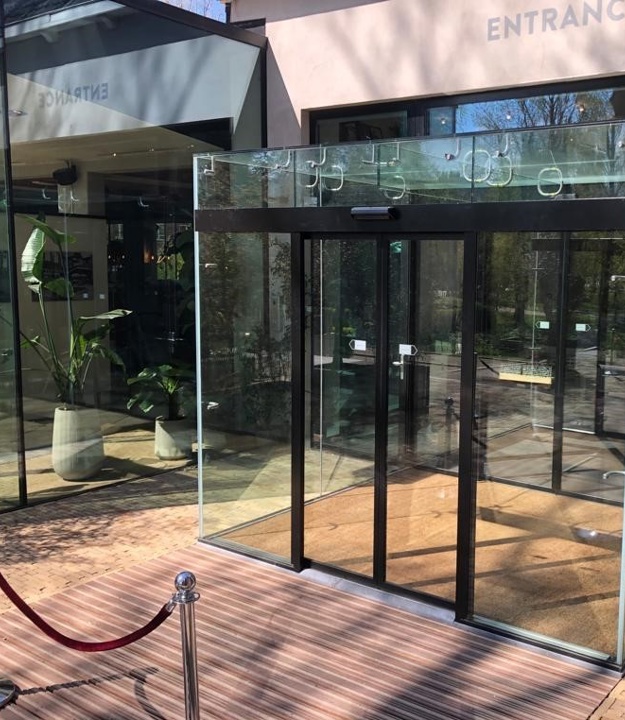 Mviewplus heeft bij dit project een Total Glas Tochtsluis geleverd en gemonteerd voorzien van 1 automatische schuifdeur met 2 vleugels. Hierbij zijn ook de RVS Metinox beugels aangebracht.