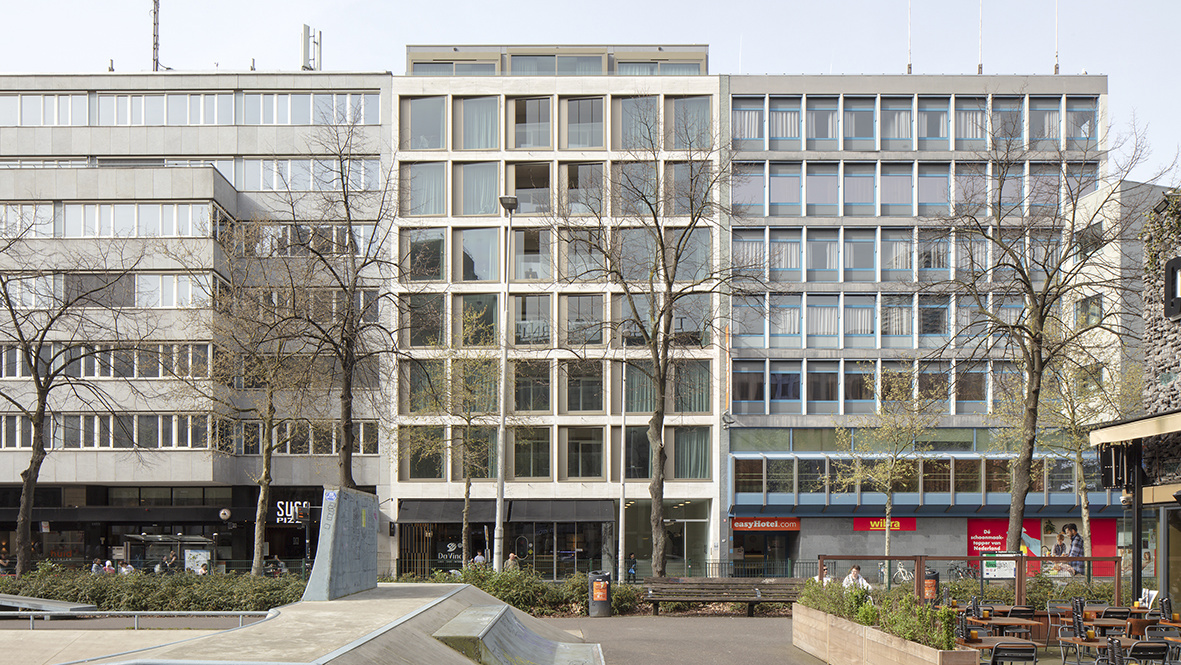 De Westblaak in Rotterdam is een naoorlogse, monofunctionele stadsboulevard met een overaanbod van verouderde kantoorruimte. Westblaak 69-81 wordt in opdracht van De Jongste Vastgoed en naar ontwerp van Eentien Architecten getransformeerd tot 12 luxe appartementen en een penthouse. De architectuur is erop gericht om de karakteristieke travertin gritgevel van het pand te handhaven en visueel te versterken.